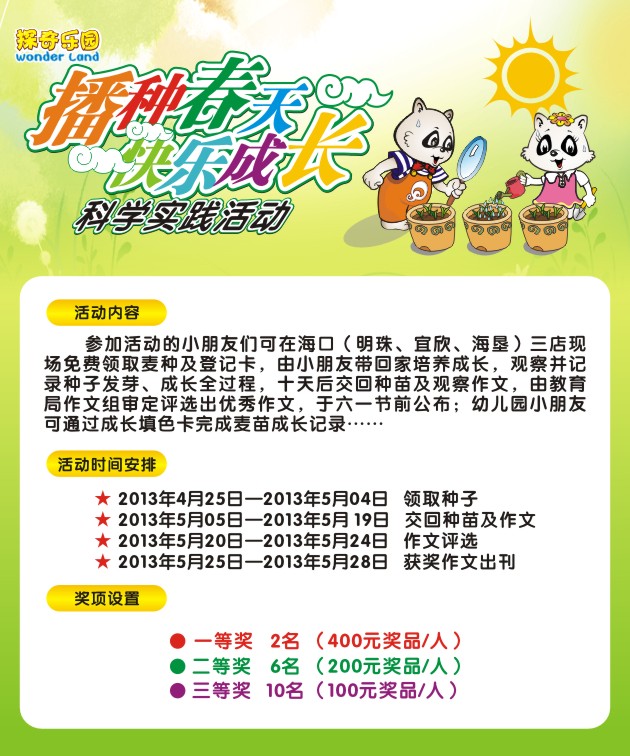 播种春天快乐成长科学实践活动--明珠、宜欣、海垦_缤纷活动 _探奇资讯_海南嘉年华娱乐管理股份有限公司-探奇乐园|嘟噜岛