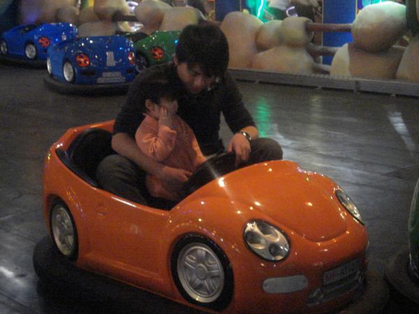和爸爸一起玩碰碰车,爸爸你要保护好我哦~~